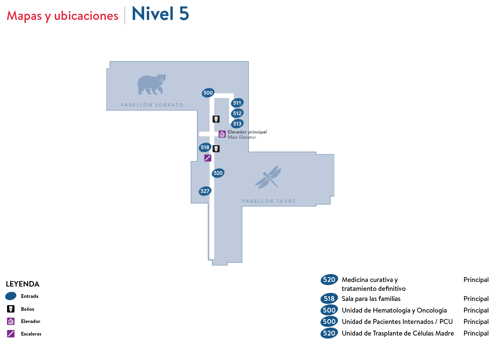 • Las habitaciones para pacientes internados se encuentran en el segundo, tercer y cuarto piso del hospital, y la farmacia está ubicada en el edificio occidental en el primer piso.